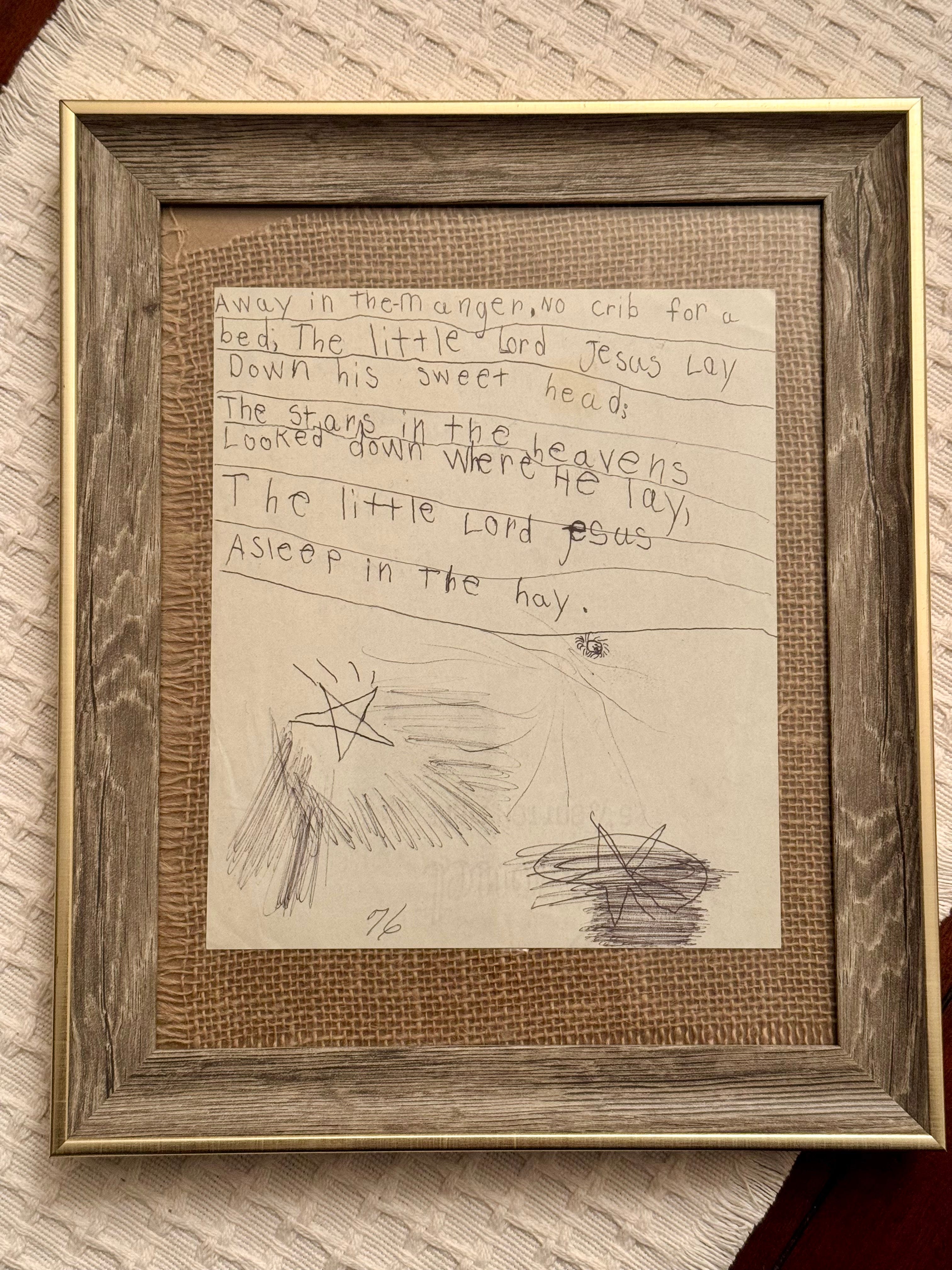 (Way back in 1976, I wrote the words to “Away in a Manger.” Apparently, I didn’t like the way my first star drawing came out.)